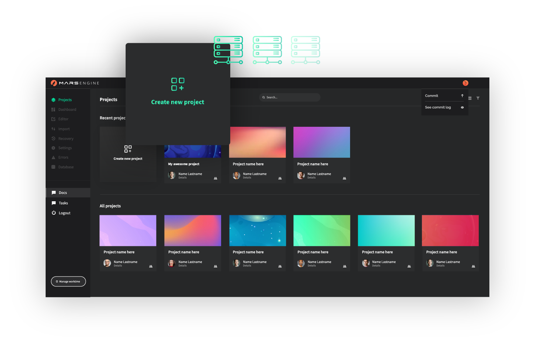 or full-stack web apps, Mars engine provides you with several server instances you can manage and scale according to your app needs, at any time.